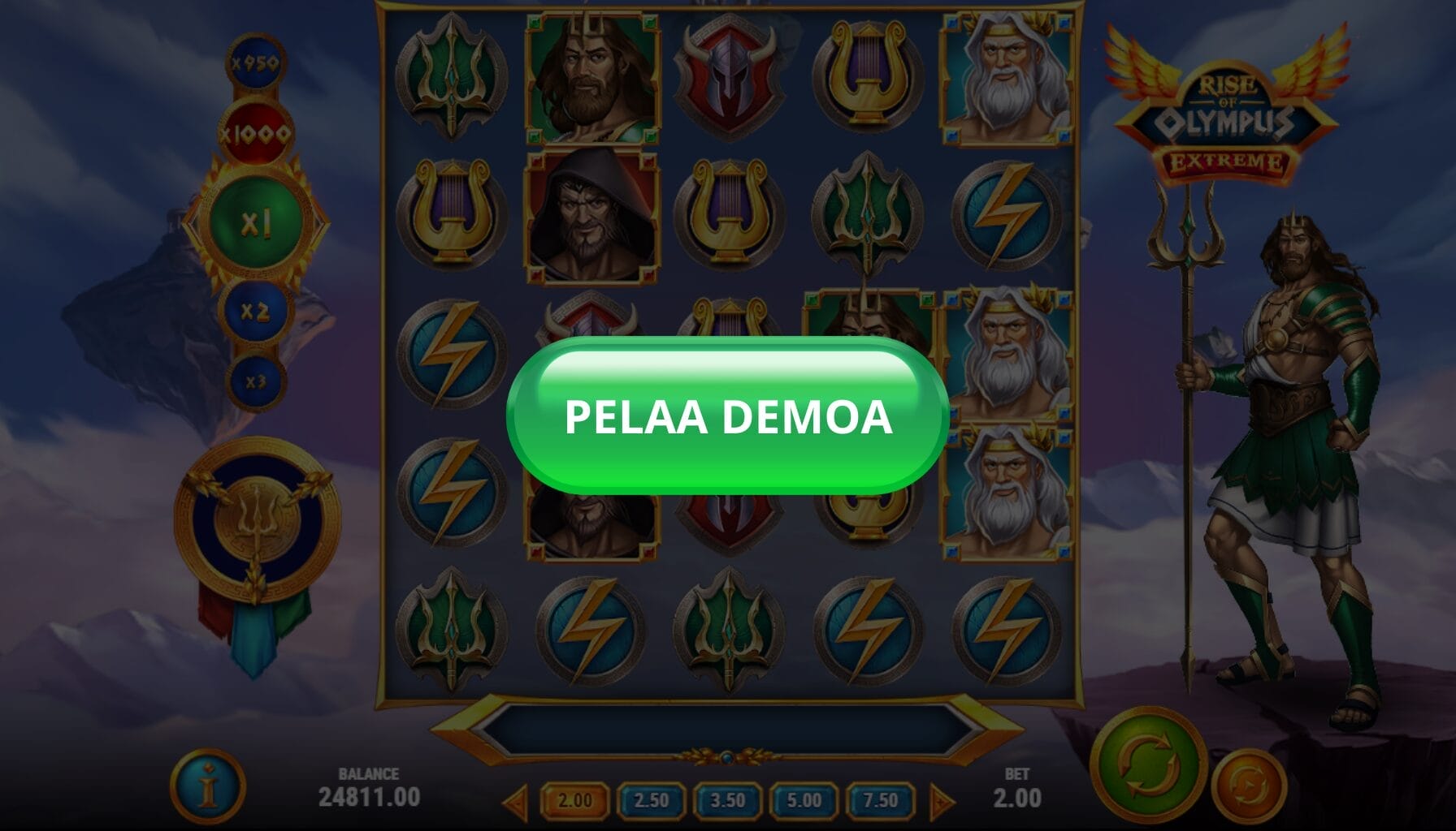 - Mene winnerzKlikkaa peliruutua ja testaa Rise of Olympus Extreme demo. Voit pelata peliä ilmaiseksi leikkirahalla ja kokeilla pelin ominaisuuksia ennen kuin pelaat oikealla rahalla.